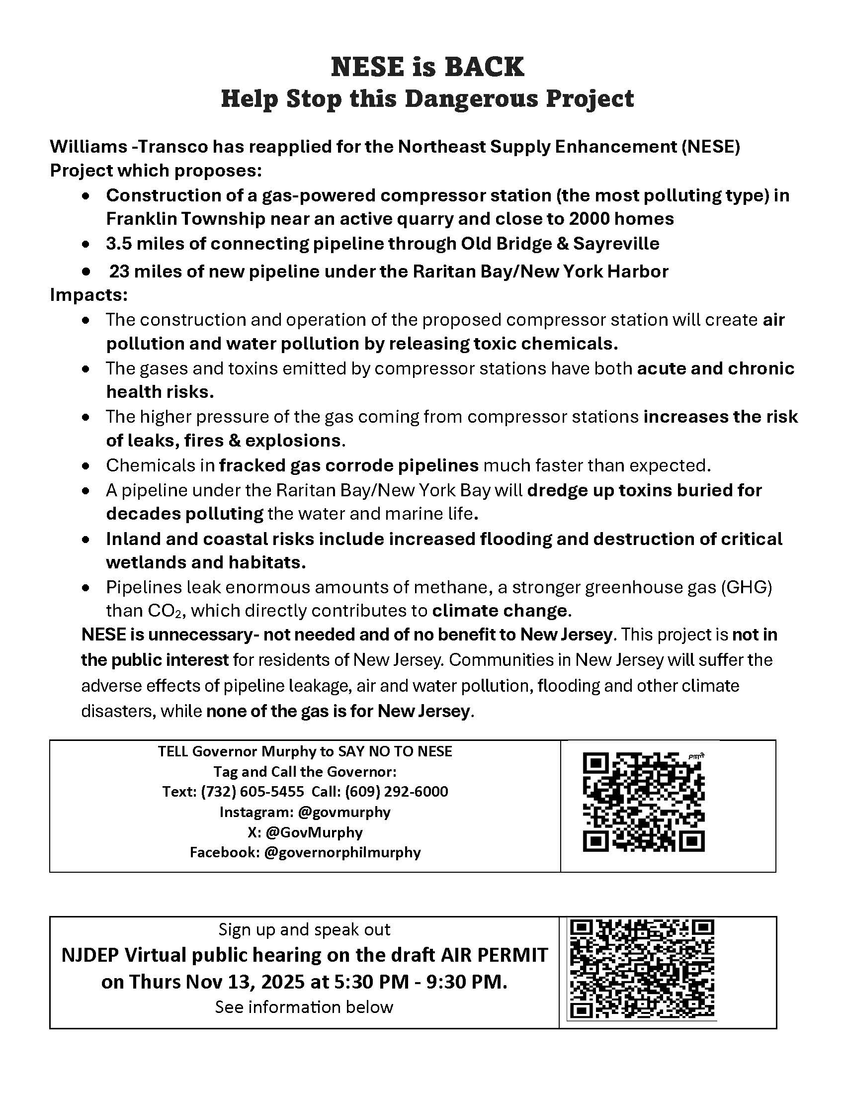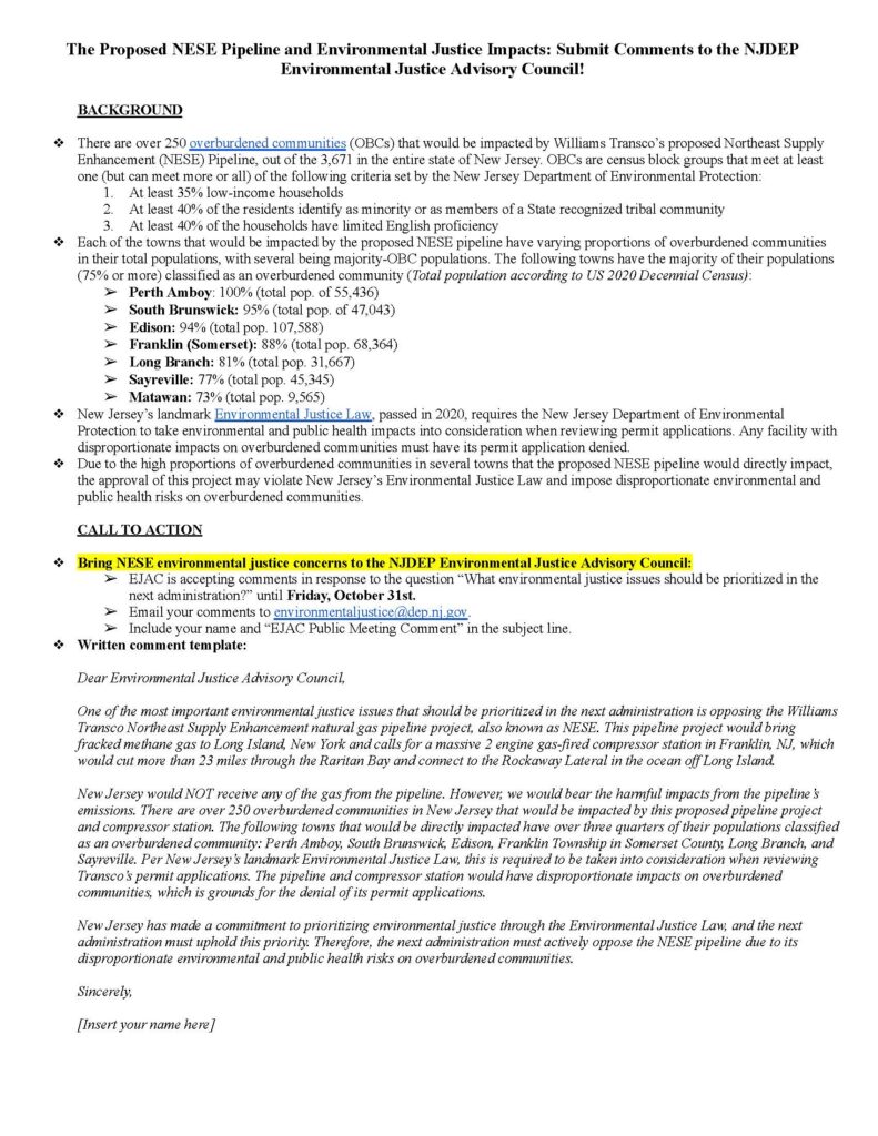 New Jersey’s landmark Environmental Justice Law, passed in 2020, requires the New Jersey Department of Environmental Protection to take environmental and public health impacts into consideration when reviewing permit applications. Any facility with disproportionate impacts on overburdened communities must have its permit application denied. Please see the CALL TO ACTION in the flyer below.